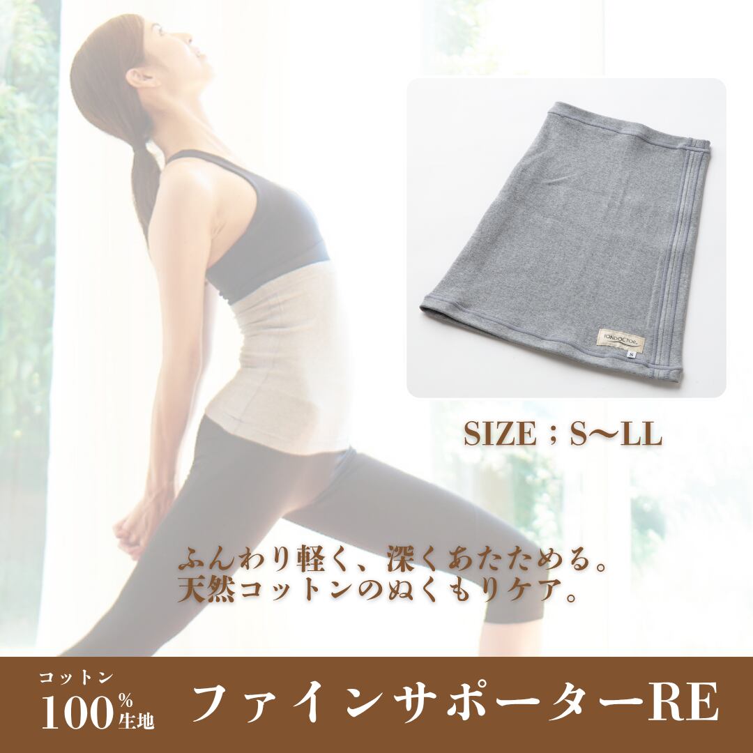 天然鉱物パウダー加工のコットン100%生地で肌着のように着られる大好評の薄型サポーター。